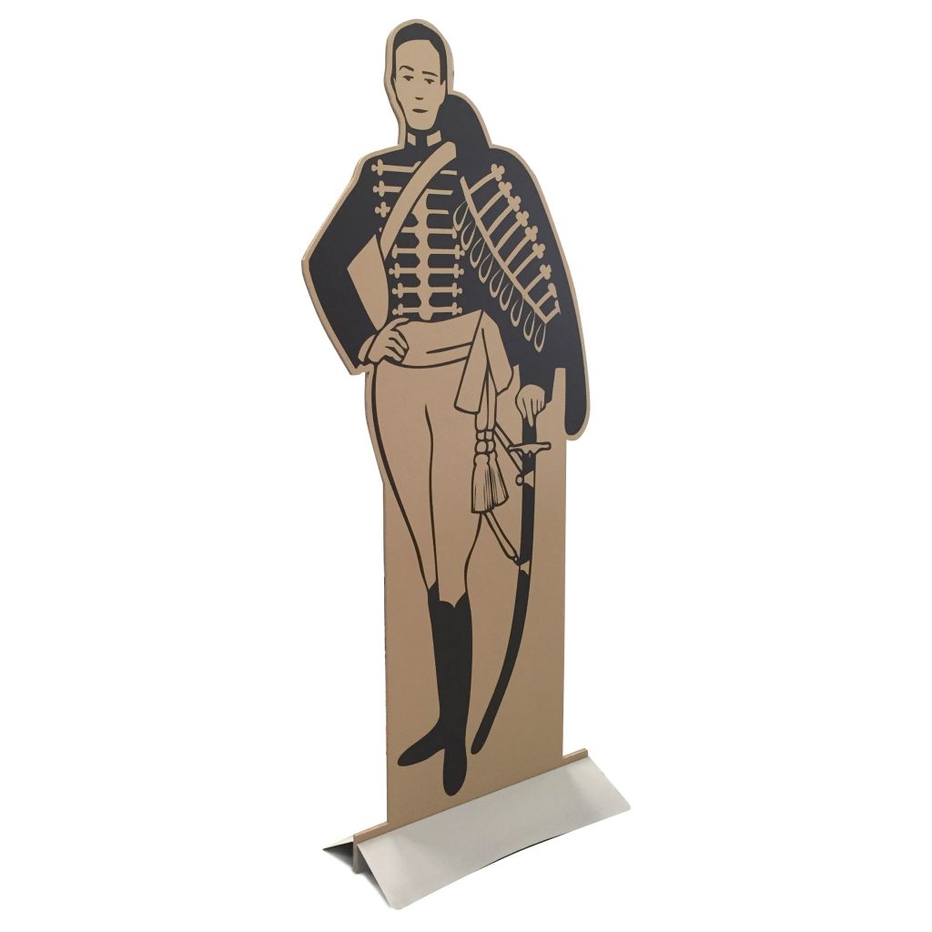 La silhouette réalisée en carton est très simple d’usage, elle s’installe grâce à un pied-chevalet (lui aussi en carton) à déplier à l’arrière. Légère, pliable, facilement stockable, elle porte aussi les valeurs de ce matériau éco-responsable.