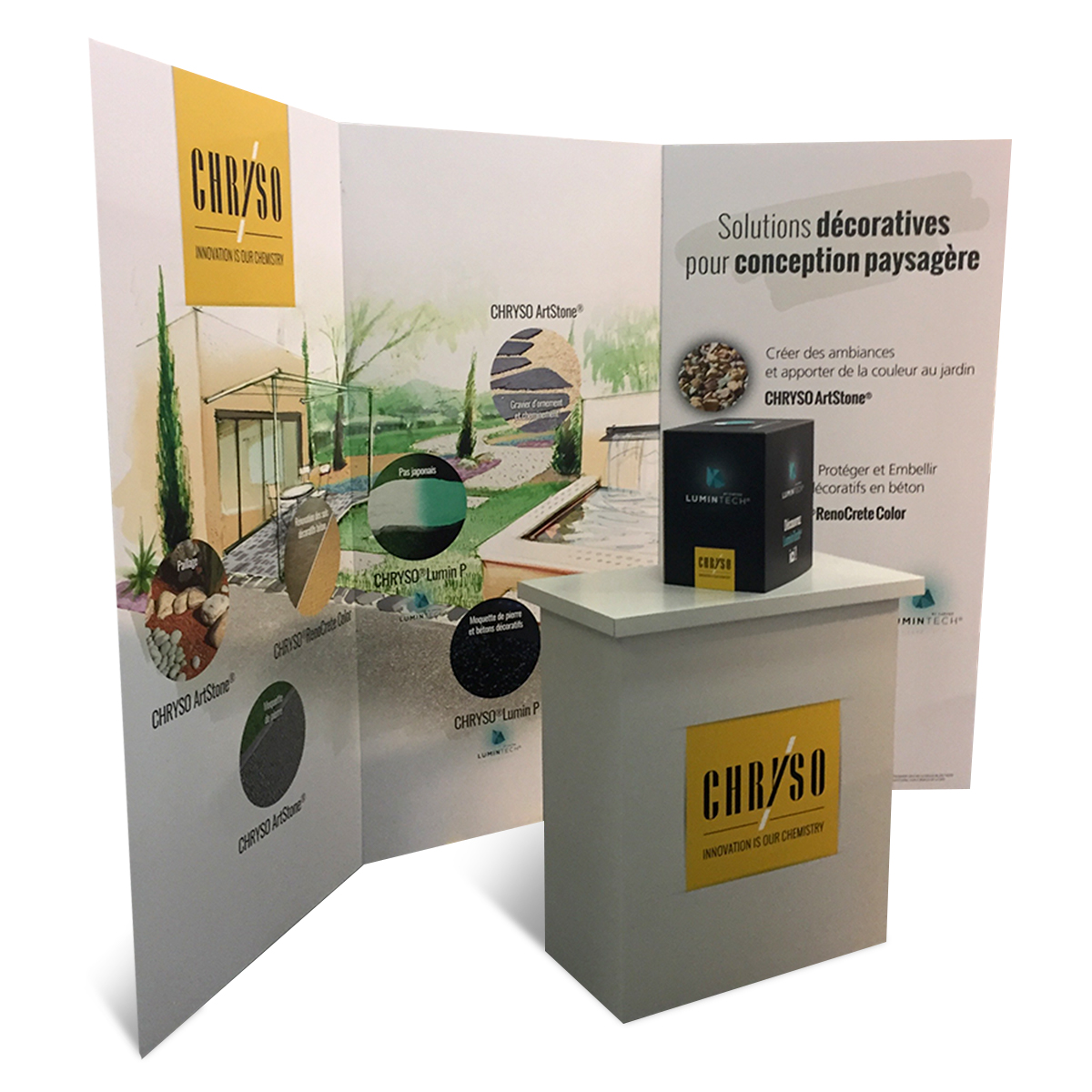 Un kit complet avec un fond de stand et un comptoir